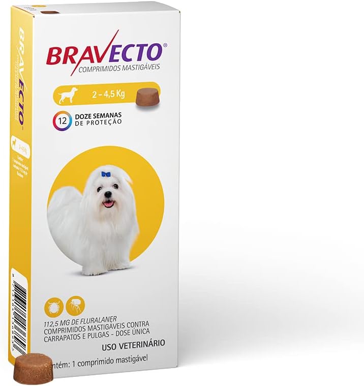 Bravecto® Cães 112,5mg Antipulgas e Carrapatos Cães de 2 a 4,5kg 1 Comp. Mastigável MSD Saúde Animal
