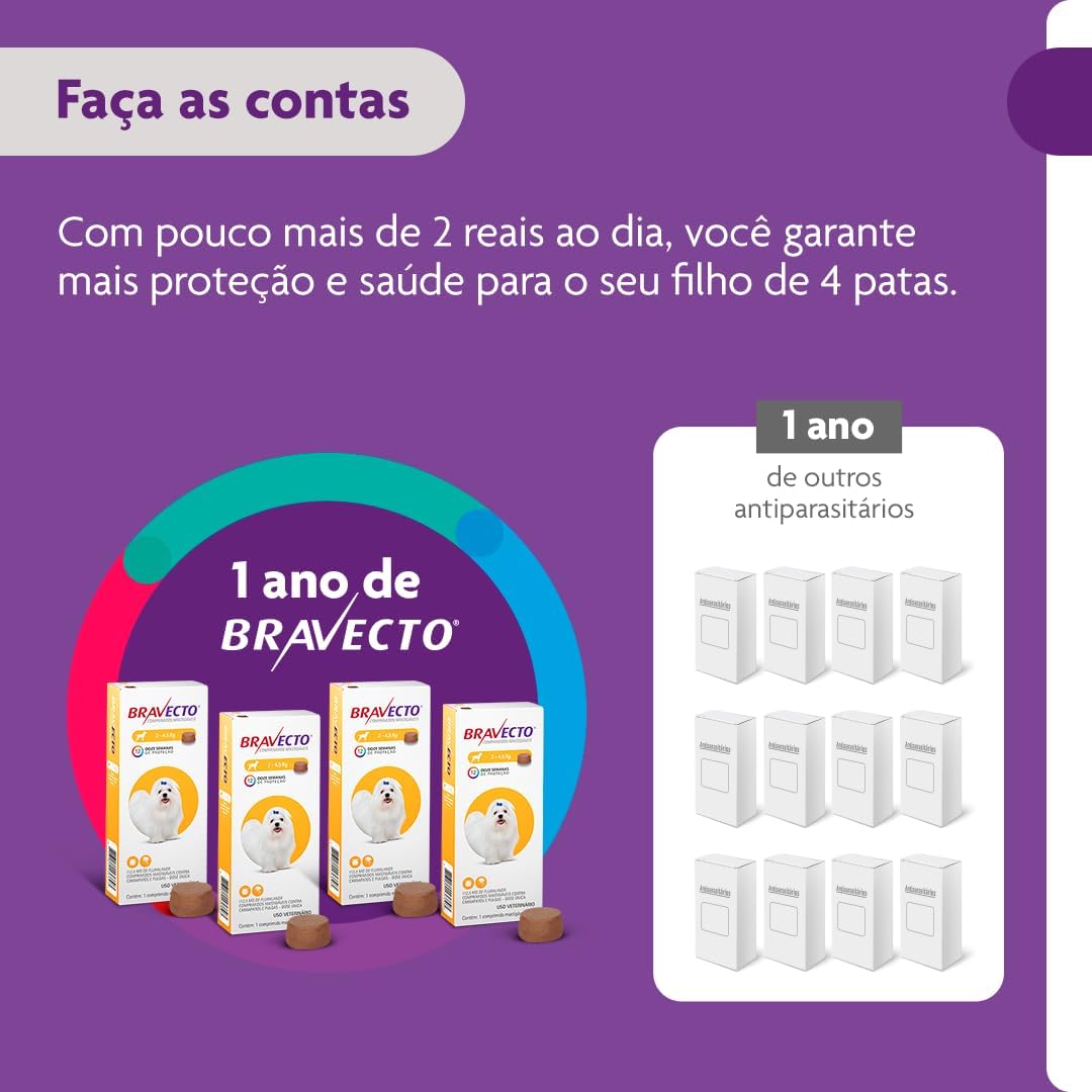Para o tratamento de infestações por carrapatos e pulgas, em cães, proporcionando 12 semanas de proteção. Esse produto veterinário é um inseticida e acaricida sistêmico com longa duração de ação que promove eficácia imediata e persistente por 12 semanas contra carrapatos (formas adultas e jovens de ixodes ricinus, ixodes hexágonos, ixodes scapularis, ixodes holocyclus, dermacentor reticulatus, dermacentor variabilis e rhipicephalus sanguineus) e pulgas (ctenocephalides felis e ctenocephalides canis). Pulgas e carrapatos devem estar aderidos ao cão e iniciar a alimentação para serem expostos ao princípio ativo. O início da ação é dentro de 8 horas para pulgas e 12 horas para carrapatos. O produto controla eficazmente as populações de pulgas no ambiente, nas áreas às quais o cão tem acesso. O produto pode ser utilizado como parte de uma estratégia de tratamento para a dermatite alérgica à picada de pulgas.