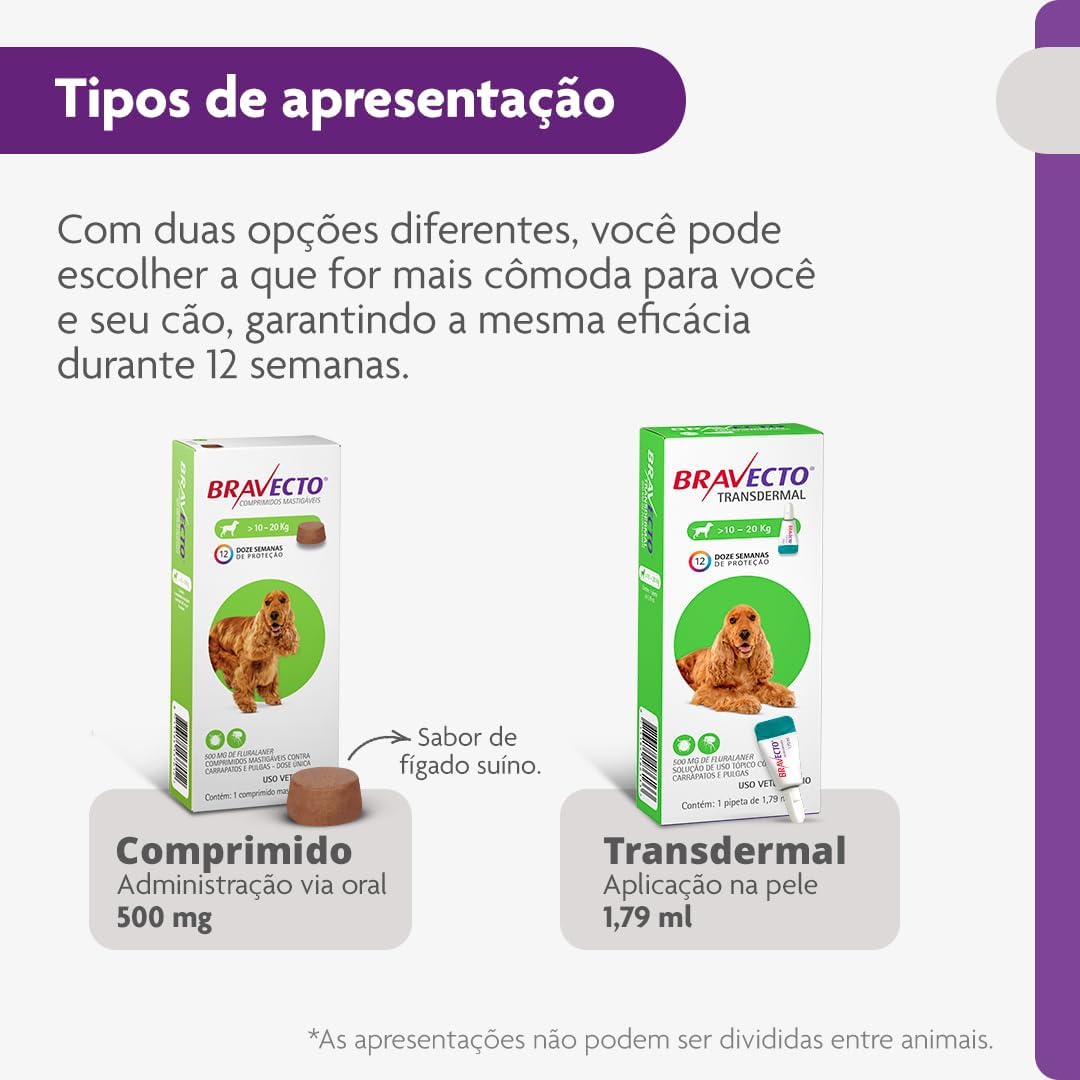 Para o tratamento de infestações por carrapatos e pulgas, em cães, proporcionando 12 semanas de proteção. Esse produto veterinário é um inseticida e acaricida sistêmico com longa duração de ação que promove eficácia imediata e persistente por 12 semanas contra carrapatos (formas adultas e jovens de Ixodes ricinus, Ixodes hexagonus, Ixodes scapularis, Ixodes holocyclus, Dermacentor reticulatus, Dermacentor variabilis e Rhipicephalus sanguineus) e pulgas (Ctenocephalides felis e Ctenocephalides canis).