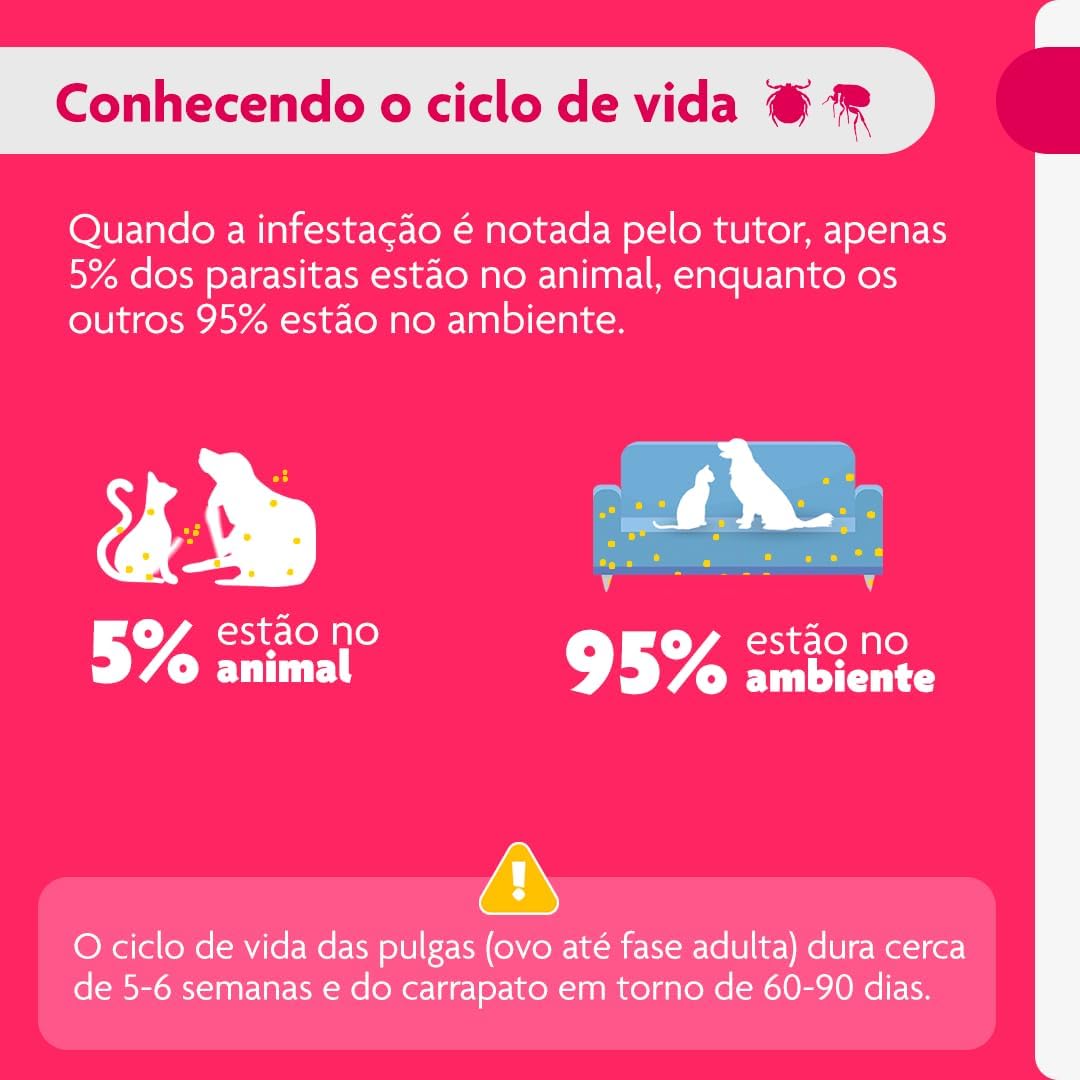 • Rápida ação: Elimina pulgas e carrapatos em até 12 horas