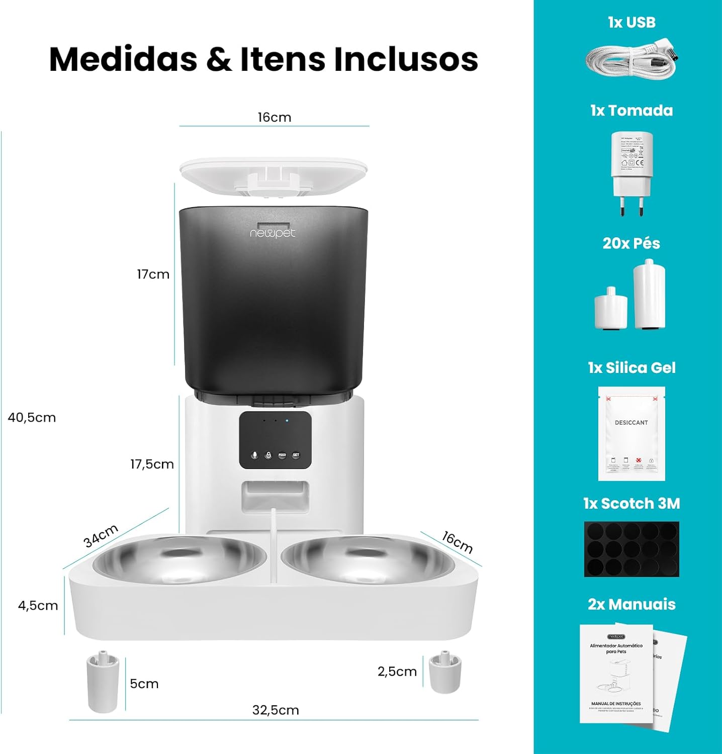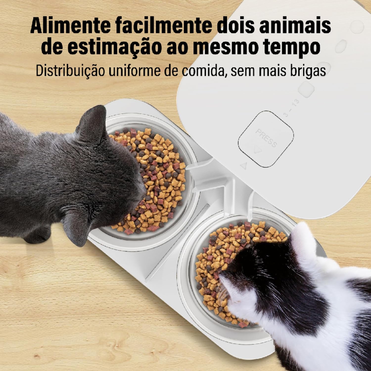 - Design com tigela dupla: famílias com vários animais de estimação podem se beneficiar do design com tigela dupla, permitindo que dois animais comam ao mesmo tempo; ótimo para gatos e cães pequenos.